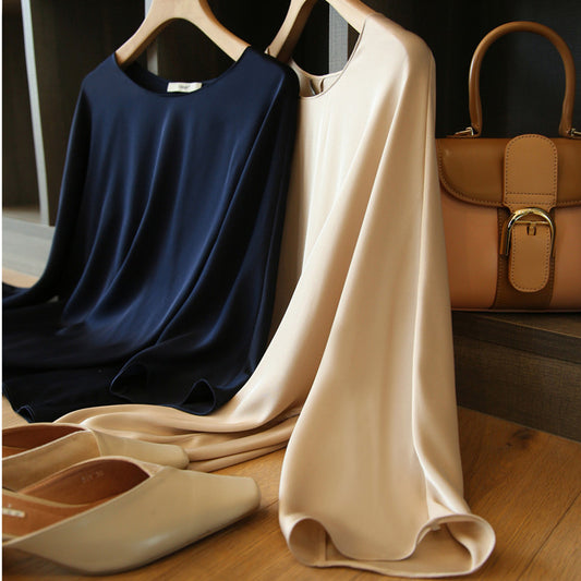 Satin Korean Style Loose And Thin Long Sleeve Lapel Shirt Women